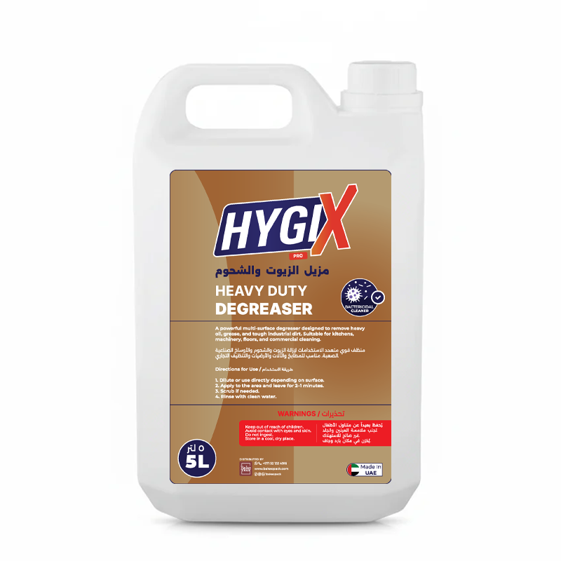 HYGIX Heavy Duty Degreaser is a powerful cleaning solution designed to remove tough grease, oil, and stubborn grime from hard surfaces. Its advanced formula penetrates and lifts heavy grease buildup, making cleaning fast and effective even in demanding environments.