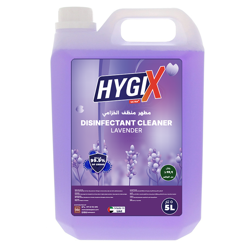 HYGIX Lavender Disinfectant is a powerful cleaning and sanitizing solution formulated to eliminate germs and bacteria while leaving a soothing lavender fragrance. Its fast-acting formula helps maintain a hygienic and fresh environment across a wide range of surfaces.